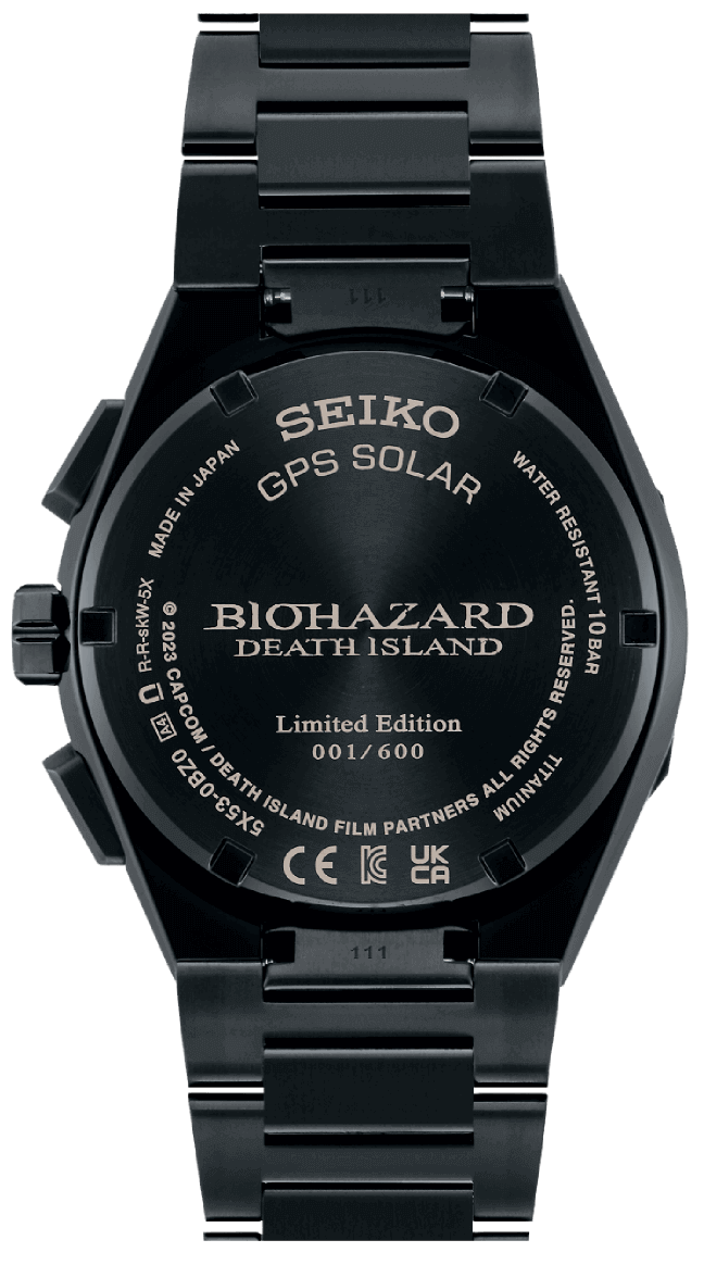 レオン・クリス着用モデルの裏ぶたには、それぞれ「BIOHAZARD:DEATH ISLAND」のシンボルロゴと、「Limited Edition」の文字、001/600 〜 600/600 までの シリアルナンバーが表記されています。